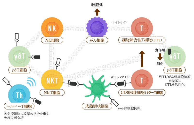 6種複合免疫療法「BASIC」に、WT1ペプチドとがん幹細胞を標的としたペプチドを付加した治療法です。